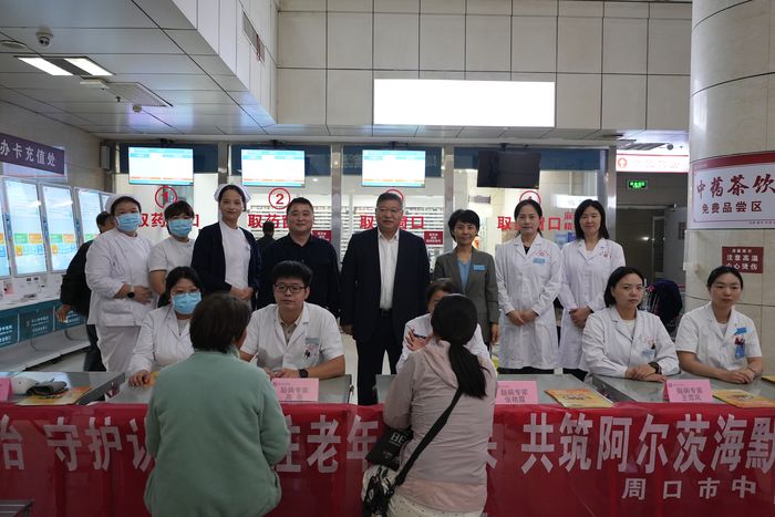 為進一步提高公眾對阿爾茨海默病的認識,倡導早期預防和科學干預,幫助老年群體及家屬更好地應對認知障礙問題,9月19日上午,周口市中醫院老年醫學科在1號樓大廳開展了以“早防早治,守護認知”為主題的阿爾茨海默健康義診活動。周口市中醫院黨委副書記、院長毛國璋,工會主席張紅梅蒞臨現場指導工作。